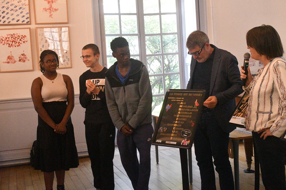 Du CP à la terminale, les élèves ont réalisé affiches, vidéos et projets variés pour alerter sur les conséquences du harcèlement et inciter chacun à agir. Plusieurs thématiques ont été abordées : le harcèlement ordinaire, le cyberharcèlement, ou encore l’importance de l’inclusion. « Nous avons vu des productions d’une grande richesse, témoignant d’une véritable implication des élèves », souligne Emmanuelle Hardy. « Ce sont des messages forts portés par des jeunes qui refusent que leur école ou leur collège soit un lieu de souffrance. » Parmi les productions présentées, certaines ont particulièrement marqué le jury, à l’image de cette affiche inspirée de l’univers des super-héros, conçue par un groupe d’élèves du collège Diderot de Besançon : « Sortir une personne du harcèlement, c’est comme être un super-héros », explique Ismaël, l’un des élèves participants. Pour eux, le message est clair : il faut agir, ne pas rester spectateur.