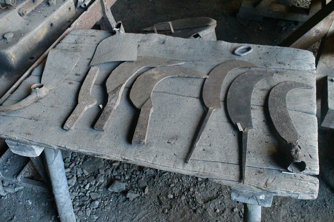 Fondée en 1828, la Taillanderie a prospéré grâce à la révolution industrielle. Alimentée par un ruisseau canalisé, elle utilisait l’énergie hydraulique pour faire tourner des roues à rodet qui actionnaient de puissants marteaux mécaniques et des soufflets. Le feu, le charbon et l’air étaient au service des forges, centralisés pour alimenter tous les foyers de l’atelier principal. Au XIXᵉ siècle, les taillanderies et autres ateliers métallurgiques se multipliaient dans la région. On y produisait clous, pinces, outils pour l’horlogerie… Ici, la spécialité restait la faux, déclinée en 120 modèles, mais aussi les haches et les pioches. En pleine activité, la production annuelle atteignait 30 000 pièces, dont 20 000 faux.