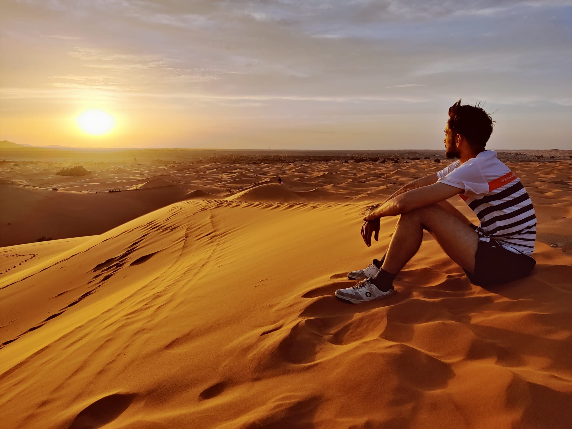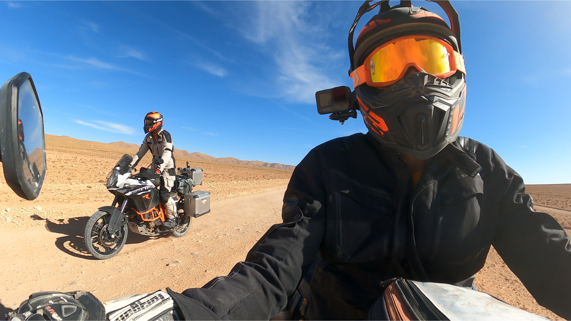 Clairement. La chaleur a été très éprouvante. Nous sommes partis en mai, et aux alentours de Meknès on côtoyait les 38°. En passant dans les montagnes ça s’est bien rafraîchit, on redescendait à 18°. Mais entre l’Atlas et le Sahara, la température montait à 42°, c’était vraiment un climat difficile à supporter, l’air était très sec, et en passant dans le casque il nous asséchait le visage. Je vous laisse imaginer l’état de nos lèves et de notre gorge… C’est une sensation très difficile à décrire, nous ne l’avions jamais ressentie nulle part ailleurs. Un climat aussi sec et aussi chaud, qui a d’ailleurs causé quelques difficultés à nos motos, notamment sur le réservoir d’essence. Mais on s’en est bien sorti. Mis à part la fois où j’ai souffert d’une intoxication alimentaire, sous 40°, ce qui a donné lieu a la pire journée de ma vie (rires). Mais le lendemain, tout était rentré dans l’ordre !