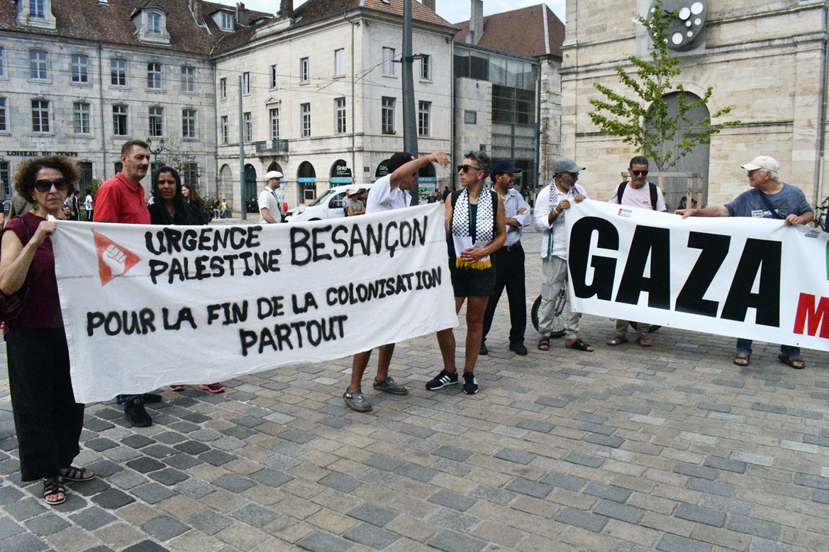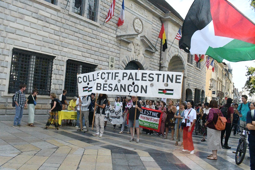 Depuis 10 mois, le collectif na lâche rien et se réunit tous les samedis après-midi au centre-ville de Besançon. Ils étaient encore plusieurs centaines à venir apporter leur soutien au peuple palestinien et faire pression sur le gouvernement français. Les participants demandent clairement « la fin de la collaboration de l’état français et de certains organismes, dont la BNP Paribas, avec l’état criminel d’Israël ». Il est exigé « la poursuite de la politique du boycott, désinvestissement et sanctions (BDS) » pour mettre fin à l’occupation et à la colonisation par Israël des territoires palestiniens.