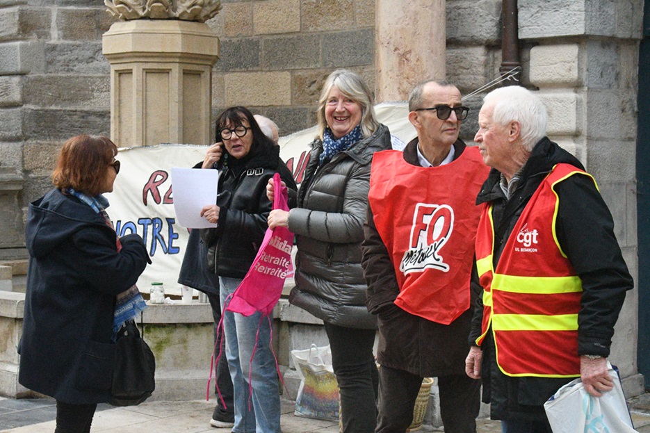 La journée syndicale des retraités s’est tenue ce mardi 3 décembre. Pour l’occasion, les neuf organisations syndicales de retraités appelaient à la mobilisation. A Besançon, un rassemblement était organisé sur la place du huit septembre. Le projet de loi de finances et le projet de loi de financement de la sécurité sociale 2025 sont au cœur de la contestation. Parmi les revendications exprimées : une autre politique budgétaire, le renforcement des services publics, dont ceux du soin et de la santé, le renforcement de la sécurité sociale et l’indexation totale et entière de toutes les retraites sur l’inflation dès le 1er janvier 2025.