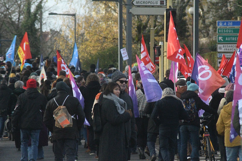 A Besançon, 1.500 personnes ont brandi pancartes et drapeaux et scandé des slogans. Partis du pôle Viotte, les manifestants ont rejoint la place de la Révolution, en passant par la préfecture. Le contexte politique actuel, avec un gouvernement censuré, n’a pas empêché la mobilisation sur le terrain. Bien au contraire. Les fonctionnaires veulent d’ores et déjà mettre la pression sur le prochain locataire de Matignon. Un moyen également de rappeler à Emmanuel Macron, qui doit prendre la parole ce soir, que la fonction publique française va mal et que ses agents ne toléreront pas tout et n’importe quoi, sur l’autel des économies et du déficit.