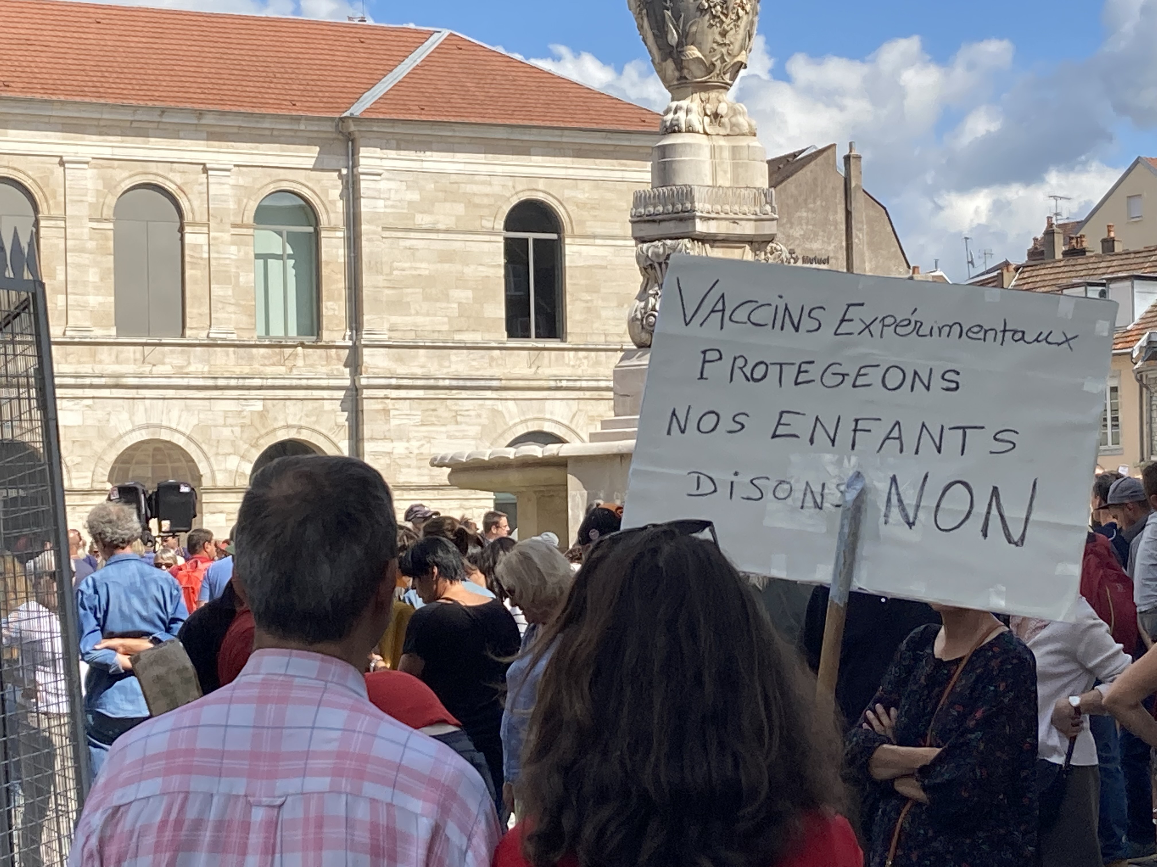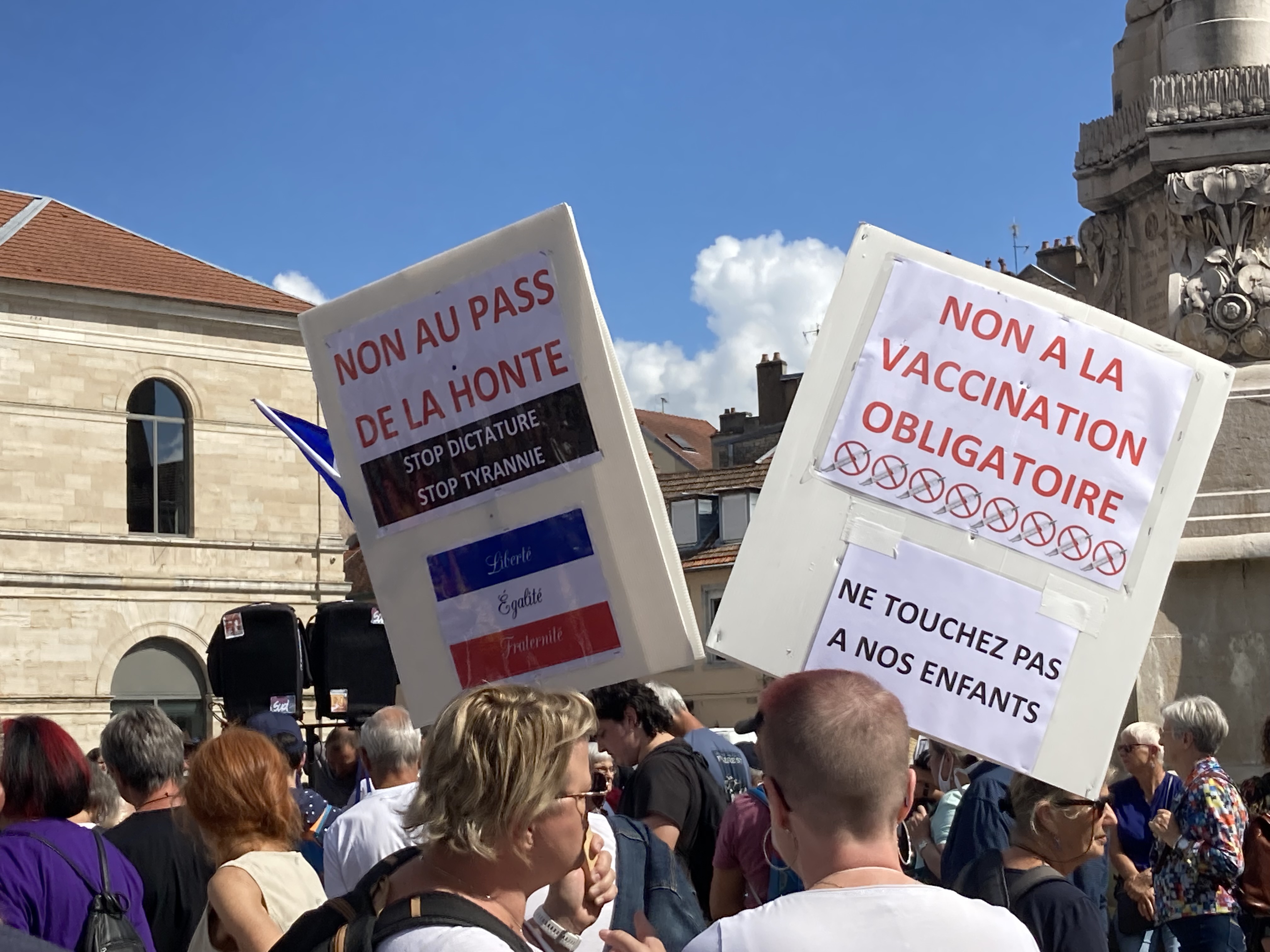 Un millier de personnes se sont rassemblées cet après-midi sur la place de la Révolution à Besançon pour dénoncer l’extension du pass sanitaire dans le pays. Une nouvelle mobilisation est annoncée ce mercredi avec l’obligation vaccinale pour les soignants, qui devront être en mesure de présenter la preuve d’au moins une injection de vaccin contre le covid-19 s’ils veulent continuer d’exercer. Un rassemblement se tiendra à cette occasion devant l’hôpital Minjoz à Besançon.