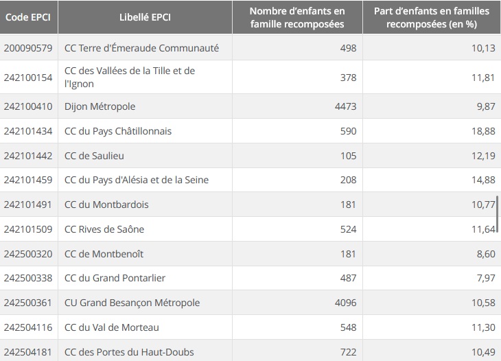 L’Insee Bourgogne Franche-Comté vient de publier une nouvelle étude sur les familles recomposées dans la région. Il en ressort que 12 % des enfants mineurs vivent dans une famille recomposée. La majorité d’entre eux fait partie d’une famille d’au moins trois enfants. Avec des parents plus souvent peu diplômés et plus exposés au chômage, leurs conditions de vie sont plus fragiles qu’au sein des familles « traditionnelles ». « Ils résident plus souvent en maison et dans les zones rurales » selon cette même enquête. Selon cette étude, le territoire du Grand Besançon recense plus de 4.000 enfants vivant en familles recomposées. Ils sont 487 sur le territoire pontissalien, 548 dans le Val de Morteau, 88 sur le secteur de la communauté de communes des Rousses Haut-Jura, 386 sur le territoire Haut-Jura Saint-Claude et 582 sur le secteur Champagnole / Nozeroy.