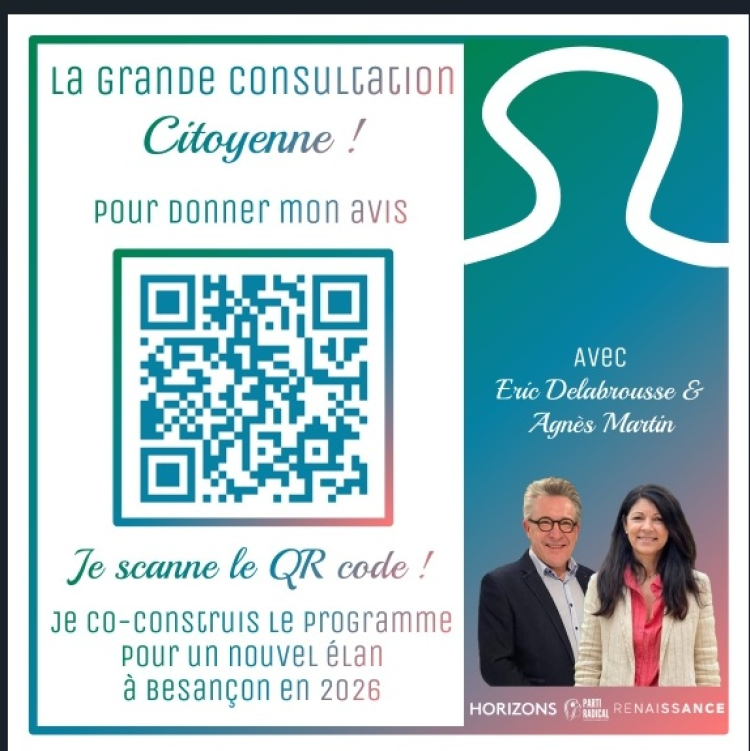 Dans le cadre des municipales de 2026, les partis politiques Horizons, le Parti radical et Renaissance annoncent aujourd’hui le lancement d'une “Grande Consultation Citoyenne” à destination des Bisontines et des Bisontins. L’objectif de cette démarche est de recueillir leur avis afin de co-construire un programme en vue de l’échéance de l’année prochaine.