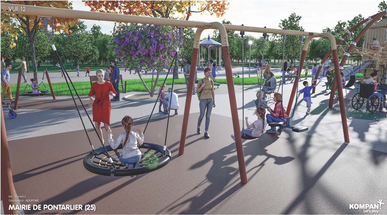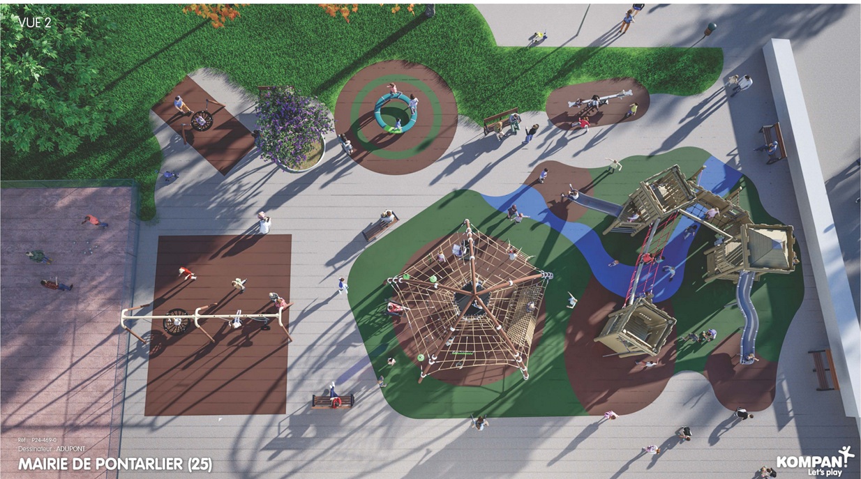 À Pontarlier, une nouvelle aire de jeux verra bientôt le jour au Grand Cours. Sa livraison de est prévue en juillet prochain. Les infrastructures incluent une diversité de modules adaptés à tous les âges, favorisant la créativité et l’inclusivité. Parmi les équipements phares : un dôme de cordes avec plateforme suspendue, un jeu rotatif collectif, ainsi que plusieurs balançoires et un panier suspendu.