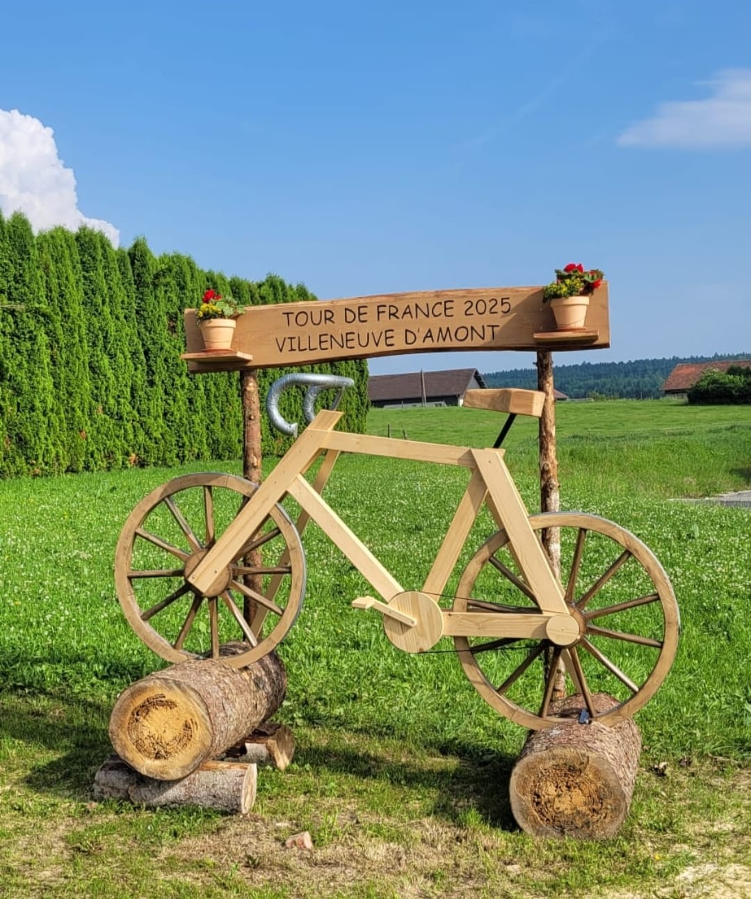 Parmi les créations les plus remarquées, deux vélos géants en bois trônent désormais à l’entrée du village, devant la fromagerie locale. Cette dernière participera elle aussi à sa manière, en exposant un comté monumental, clin d’œil savoureux au patrimoine gastronomique régional. Ces installations témoignent de l’investissement de tout un village. « C’est important de marquer le coup, d’autant plus que nous sommes la première commune du Doubs traversée cette année », explique M. Grassa. Villeneuve-d’Amont, qui compte à peine 200 habitants, espère ainsi montrer toute l’énergie des petites communes rurales.