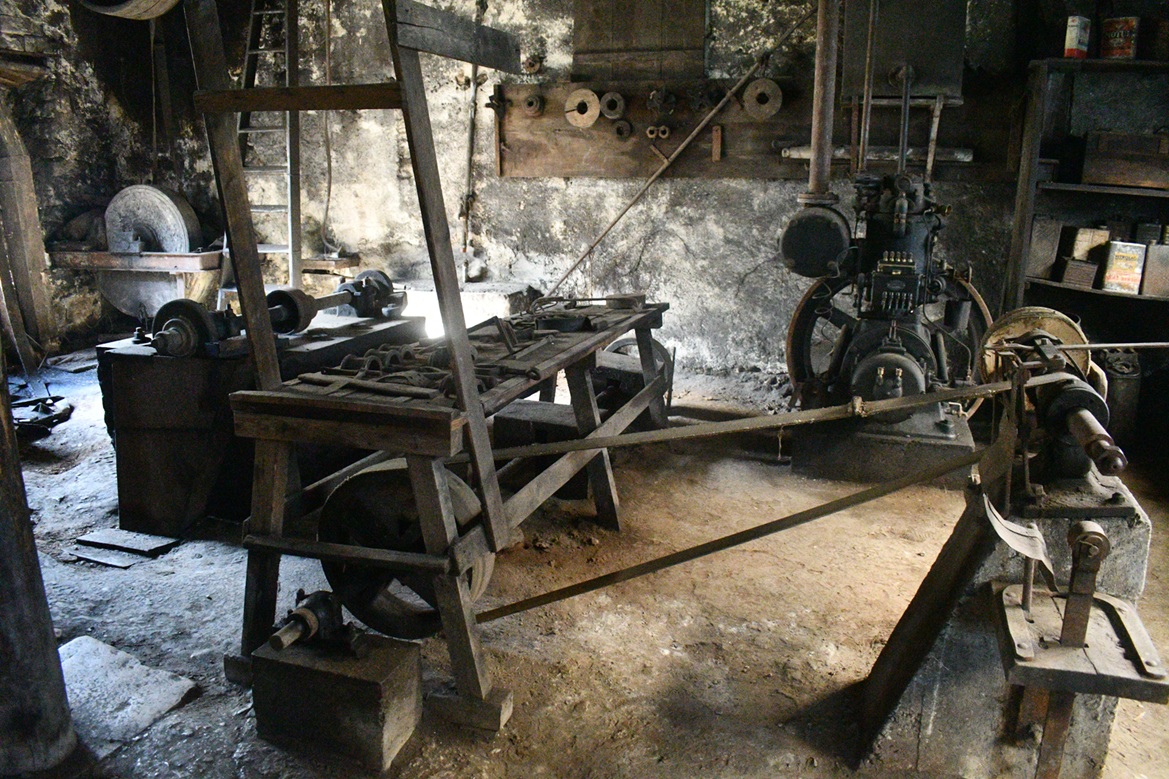 Fondée en 1828, la Taillanderie a prospéré grâce à la révolution industrielle. Alimentée par un ruisseau canalisé, elle utilisait l’énergie hydraulique pour faire tourner des roues à rodet qui actionnaient de puissants marteaux mécaniques et des soufflets. Le feu, le charbon et l’air étaient au service des forges, centralisés pour alimenter tous les foyers de l’atelier principal. Au XIXᵉ siècle, les taillanderies et autres ateliers métallurgiques se multipliaient dans la région. On y produisait clous, pinces, outils pour l’horlogerie… Ici, la spécialité restait la faux, déclinée en 120 modèles, mais aussi les haches et les pioches. En pleine activité, la production annuelle atteignait 30 000 pièces, dont 20 000 faux.
