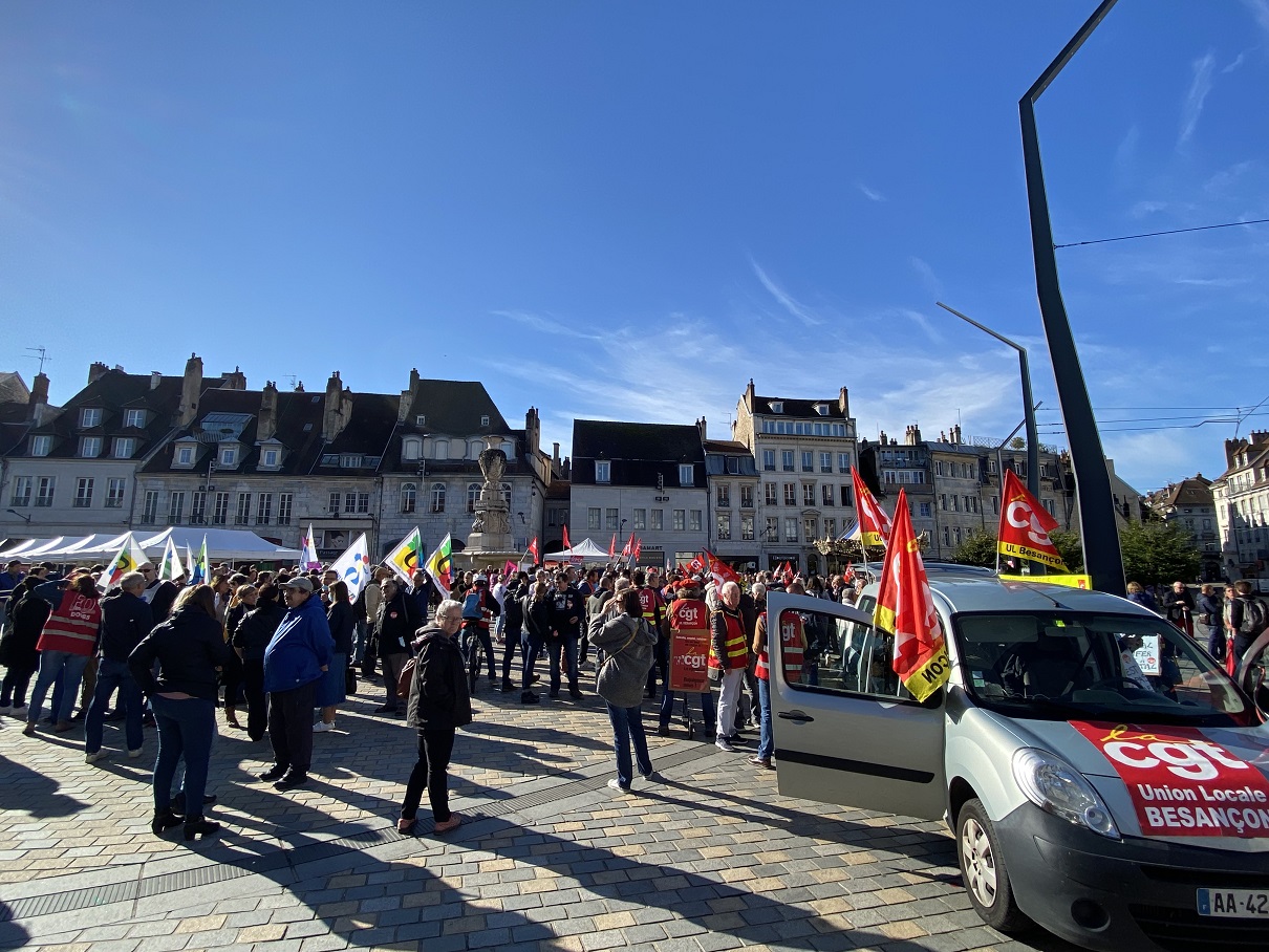 Alors qu’une petite tension a été constatée en début de cortège entre les composantes de l’intersyndicale – la CGT ayant décidé de prendre le départ plus tôt que les autres – environ 600 personnes se sont rassemblées ce matin à Besançon pour les salaires, l’emploi, les conditions de travail et les études.