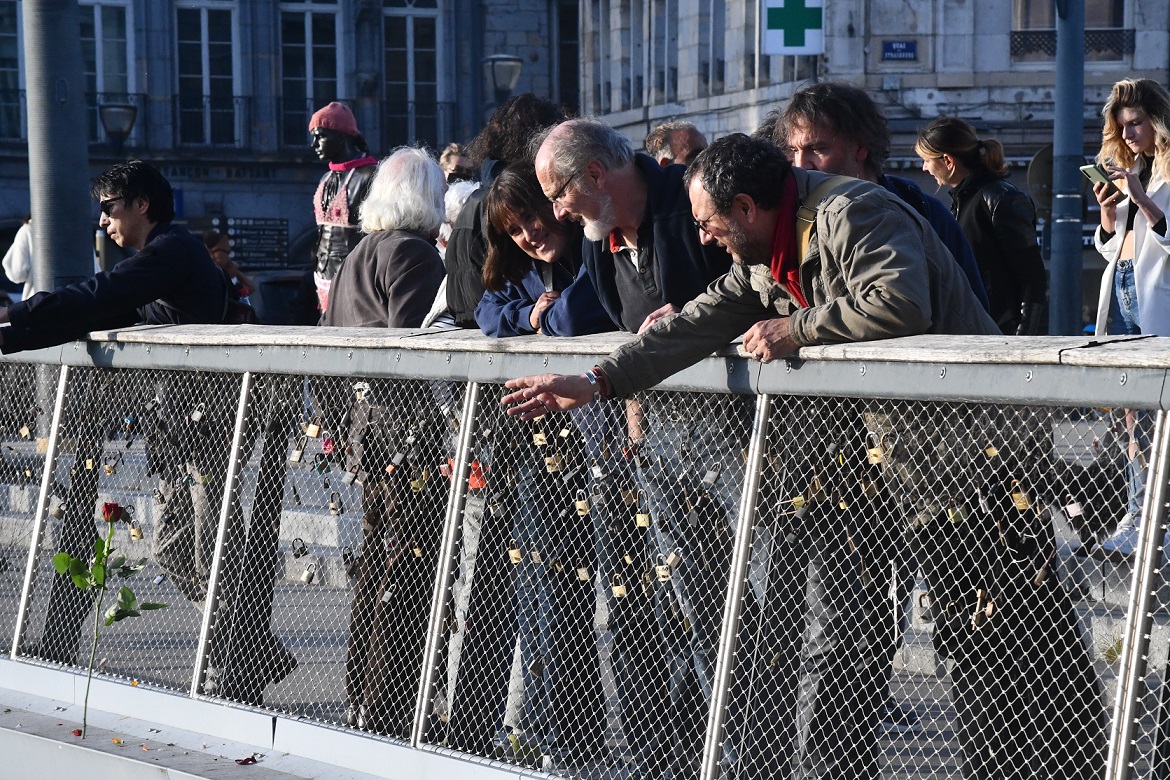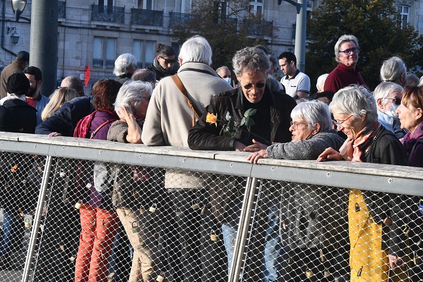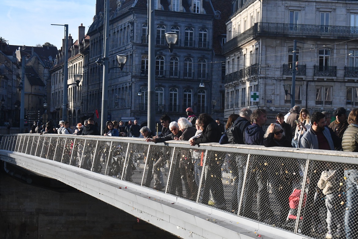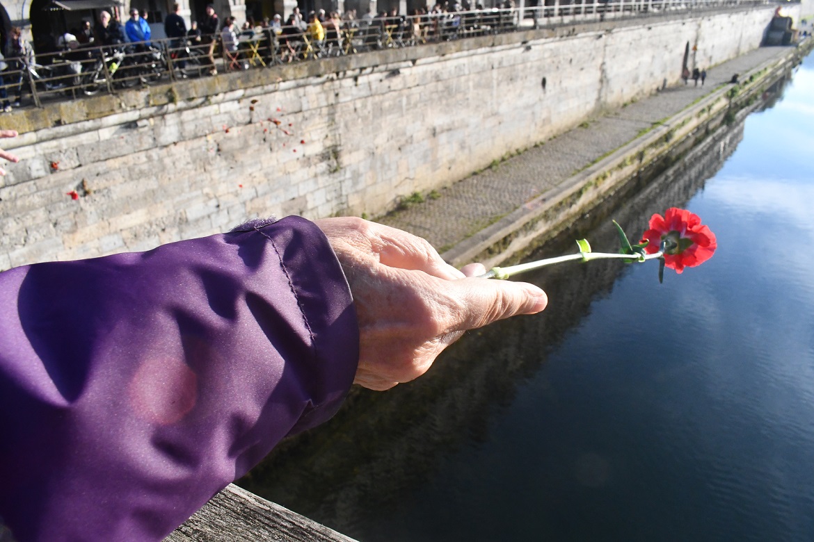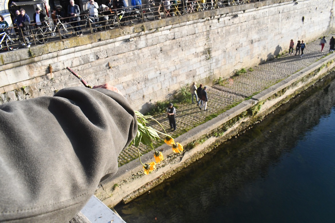 Pour rendre hommage aux opprimés et personnes qui ont perdu la vie, les manifestants ont symboliquement et pacifiquement jeté des fleurs dans le Doubs en fin de manifestation.