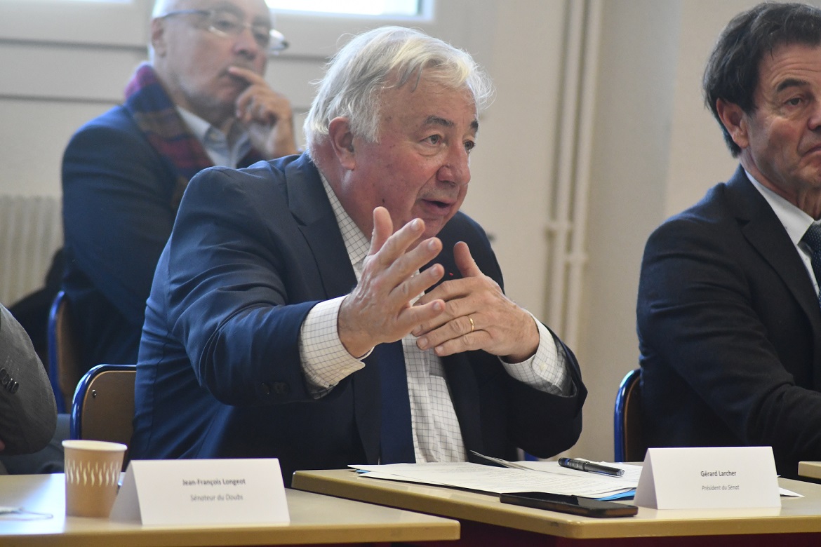 Gérard Larcher, le président du Sénat, est dans le Doubs ce lundi. Il répond à l’invitation des sénateurs doubistes Annick Jacquemet, Jacques Grosperrin et Jean-François Longeot. Alors que cet après-midi, le deuxième personnage de l’état est dans le Haut-Doubs, ce matin, il était dans le Grand Besançon. Mr Larcher s’est rendu à la fromagerie de Fontain, avant de visiter l’école nationale d’industrie laitière de Mamirolle , où il a participé à une table ronde sur le thème de l’apprentissage.