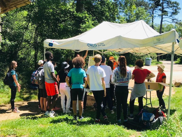 Sous le soleil ardent de l’après-midi, c’est dans l’ombre de la forêt de Chailluz, à Besançon, que se sont réfugiés les élèves de quatrième aux côtés de la fédération française de randonnée. Ils participaient à la Rando Challenge. Une épreuve par équipe qui consiste à suivre un itinéraire tracé sur une carte au long duquel des balises sont placées, et doivent être reportées avec le plus de précision possible. Chaque balise contient une question à affirmation multiple, à laquelle il faut répondre correctement. Cette activité s’articule autour de l’orientation, le sens de l’observation et la précision, tout en amenant une dimension culturelle. Mais surtout une activité de plein air, qui était un aspect phare pour les organisateurs. « On voulait faire sortir les élèves en extérieur, c’était vraiment notre volonté. Qu’ils pratiquent le plus en extérieur, et qu’ils découvrent l’environnement local dans lequel ils évoluent » souligne Félix Penin, chargé de développement "valeurs olympiques" au CROS.
