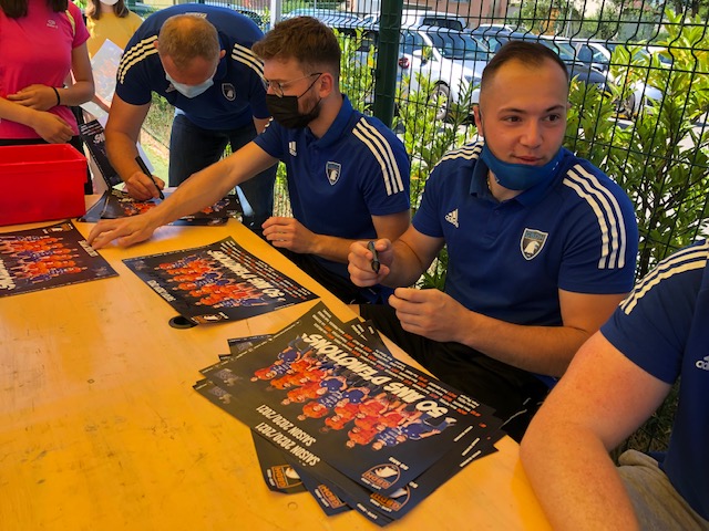 Pour cette deuxième journée du camp olympique, le rendez-vous a débuté ce matin au collège Jean Jaurès de Saint-Vit. Les élèves de quatrième ont assisté à une intervention sur les valeurs olympiques animée avec un petit quizz, puis la création d’un club sportif. Ensuite, ce sont les joueurs du Grand Besançon Doubs Handball (GBDH) qui ont fait le déplacement pour se rendre dans l’établissement saint-vitois, afin de rencontrer et d’échanger avec ces élèves concernant le monde du sport et les valeurs transmises. La matinée s’est achevée après une séance photo et autographes.