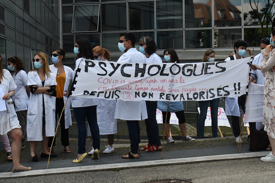 Les psychologues ont dénoncé ce jeudi une série de mesures menaçant selon eux de plus en plus leurs pratiques. Ils ont aussi pointé du doigt un manque flagrant de concertation entre ces professionnels et les services de l’Etat. Parmi leurs revendications, les manifestants mobilisés ce jeudi alertent sur le salaire de début de carrière, inférieur à celui des infirmiers. Ils déplorent que le Ségur de la santé exclue la revalorisation des psychologues. Tout comme l’augmentation de leur salaire, ils demandent également l’accès direct du public aux consultations des psychologues dans les établissements de la fonction publique hospitalière. Les psychologues souhaitent aussi une réduction de la précarité et des temps partiels dans ces métiers de plus en plus sollicités, notamment depuis l’impact de la crise du Covid-19.
