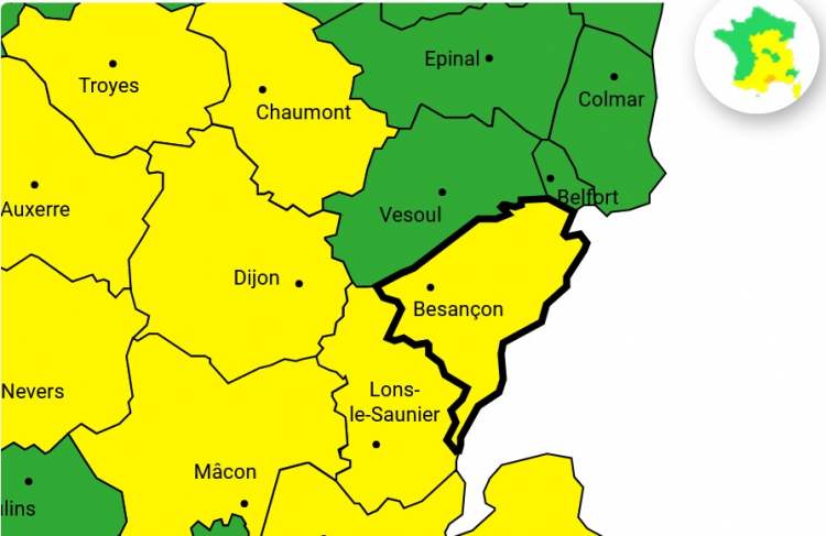 Météo France a placé les départements du Doubs et du Jura en vigilance jaune « neige verglas » pour un risque de regel des chassées mouillées ce lundi 14 mars à 3h, et jusqu’à 9h.