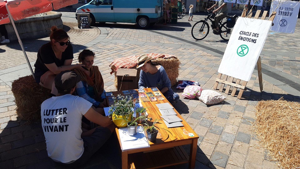 Ce samedi et ce dimanche, pendant 24h, le mouvement écologiste Extinction Rébellion (XR) a occupé la place de la Révolution, au centre-ville Besançon. Le collectif avait installé 4 cercles de bottes de paille pour instaurer un temps d’échange, d’expression libre et de débat, portant sur les enjeux climatiques et la protection de l’environnement.