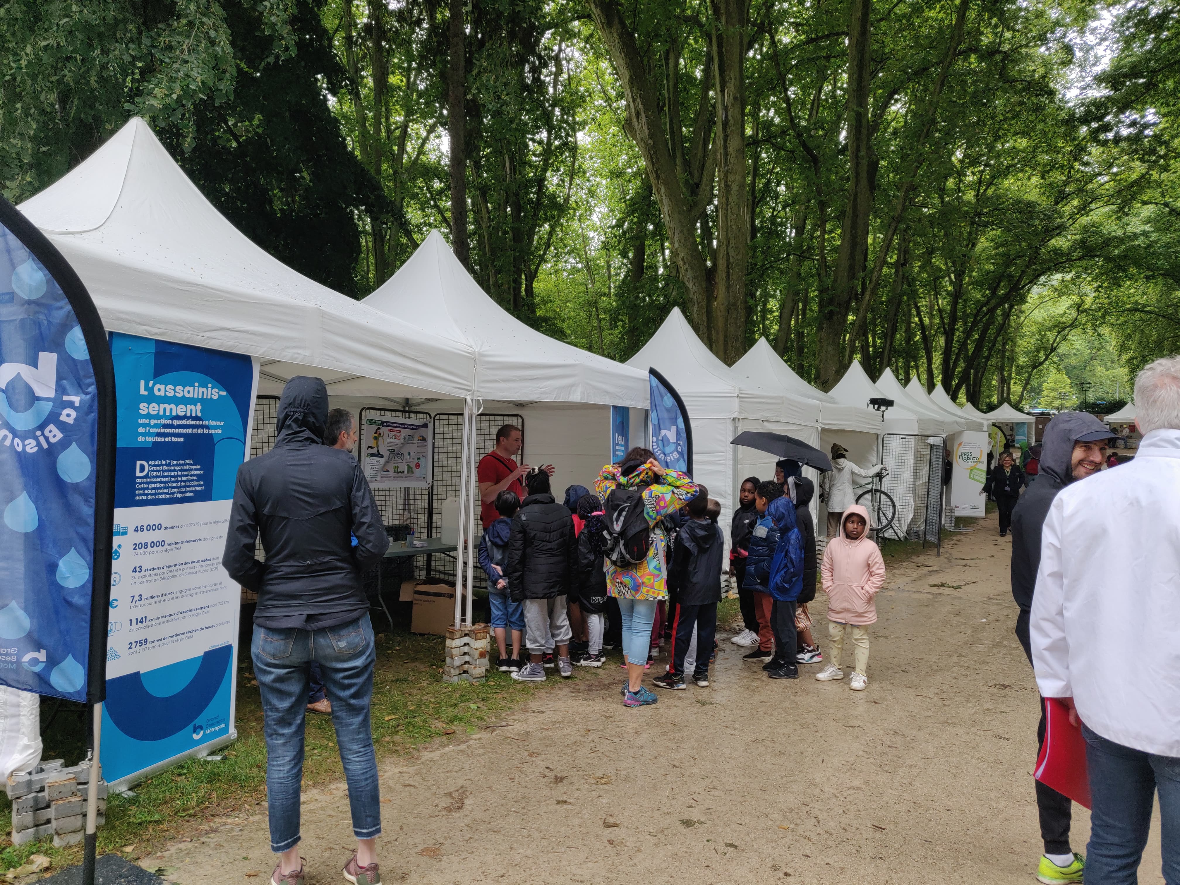 Sous la pluie, les écoliers découvrent les différents stands du village