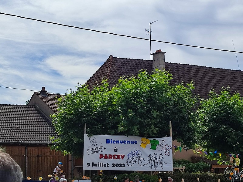La 8è étape du Tour de France s’élancera de Dole ce samedi, vers 13h20. L’arrivée est prévue à Lausanne vers 17h30. Soit un parcours de 186 kilomètres. La commune de Parcey, près de Dole, fait partie des villages traversés par la Grande Boucle. Il a été décoré de la plus belle des manières pour accueillir tous les acteurs de cette 109è édition. Merci à Nadine pour les photos.