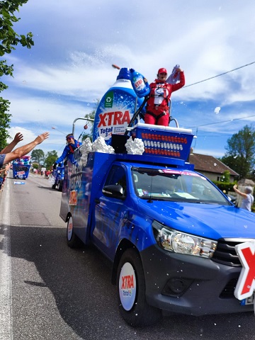 Le Jura est en fête. Dans moins d’une heure, les coureurs prendront le départ. Cette 8è étape du Tour de France s’élancera de Dole, vers 13h20. L’arrivée est prévue à Lausanne vers 17h30. Soit un parcours de 186 kilomètres. Dole, Mont-sous-Vaudrey, Arbois, Montrond, Champagnole, Foncine-le-Bas, Saint-Laurent-en-Grandvaux, Morbier, Morez, Les Rousses, Bois d’Amont… font partie des communes jurassiennes traversées par la Grande Boucle. Avant de pouvoir applaudir les coureurs, les spectateurs ont vu passer la caravane publicitaire.