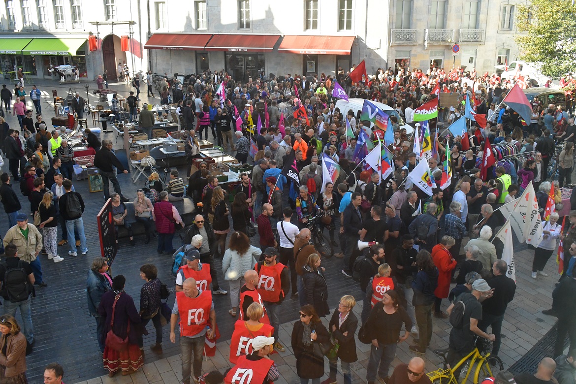 La mobilisation interprofessionnelle prévue ce mardi 18 octobre a réuni près de 1200 personnes. Ce sont près de 150 points de rassemblement qui étaient prévus en France, selon la CGT, qui organisait cette journée avec les syndicats FO, Solidaires et FSU et les organisations de jeunesse. Pour une hausse des salaires, contre les réquisitions de grévistes dans les raffineries : de nombreux secteurs avaient déposé des appels à cesser le travail. Le cortège a démarré place Pasteur pour se diriger vers la Préfecture et l’Esplanade de la mairie.