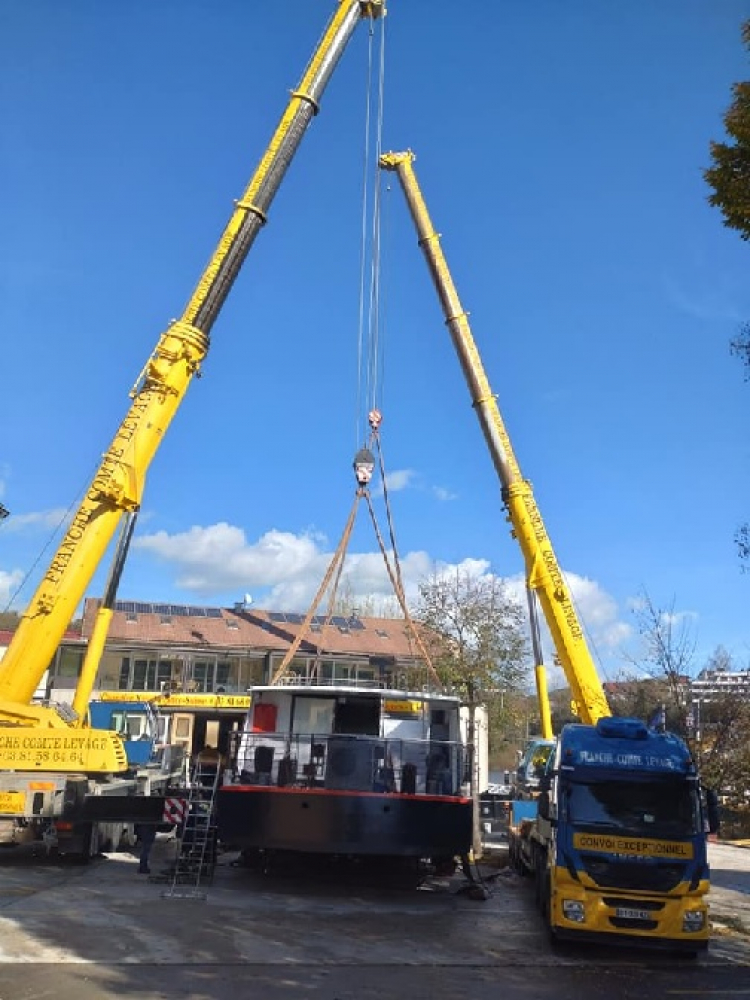Il ne passe pas inaperçu. A Villers-le-Lac, le chantier naval a construit pendant 11 mois un nouveau bateau qui va rejoindre le sud de la France. Le bel oiseau de 60 tonnes a quitté son nid du Haut-Doubs. Il a été chargé sur un camion mercredi. Il a passé la nuit à Morteau, avant d’entamer son périple, qui le conduira jusqu’à Bordeaux, où une nouvelle vie, en lien avec le tourisme, l’attend.