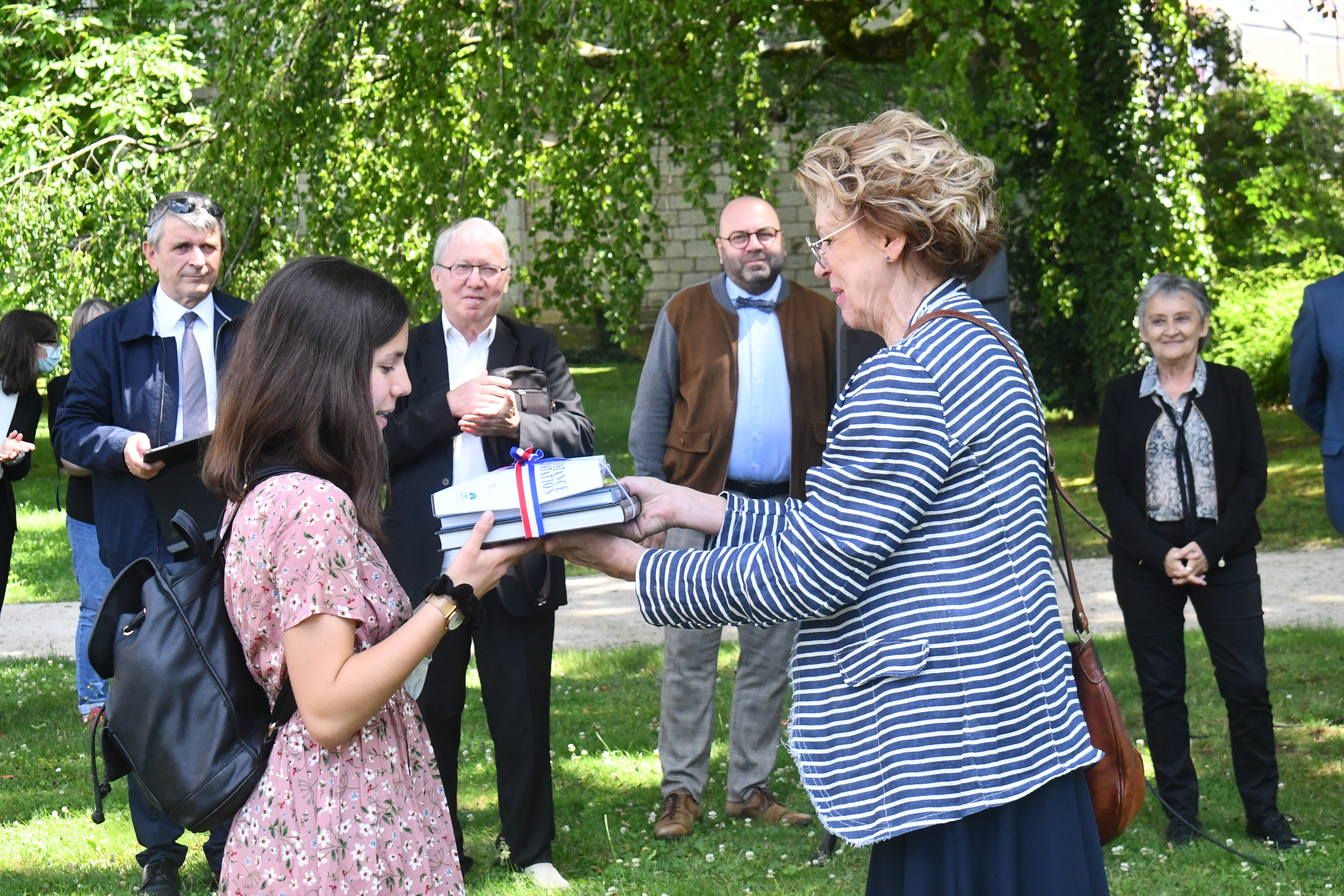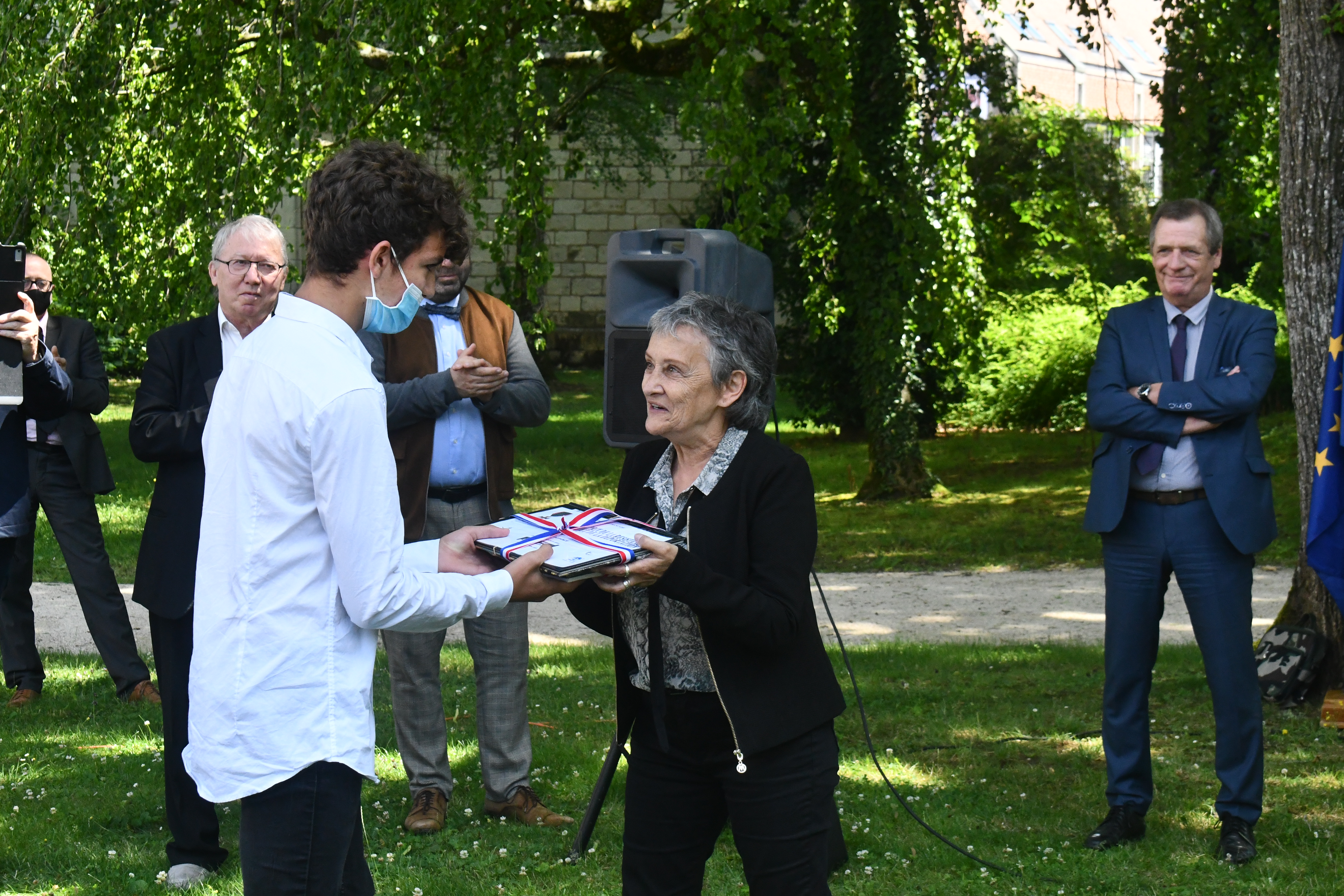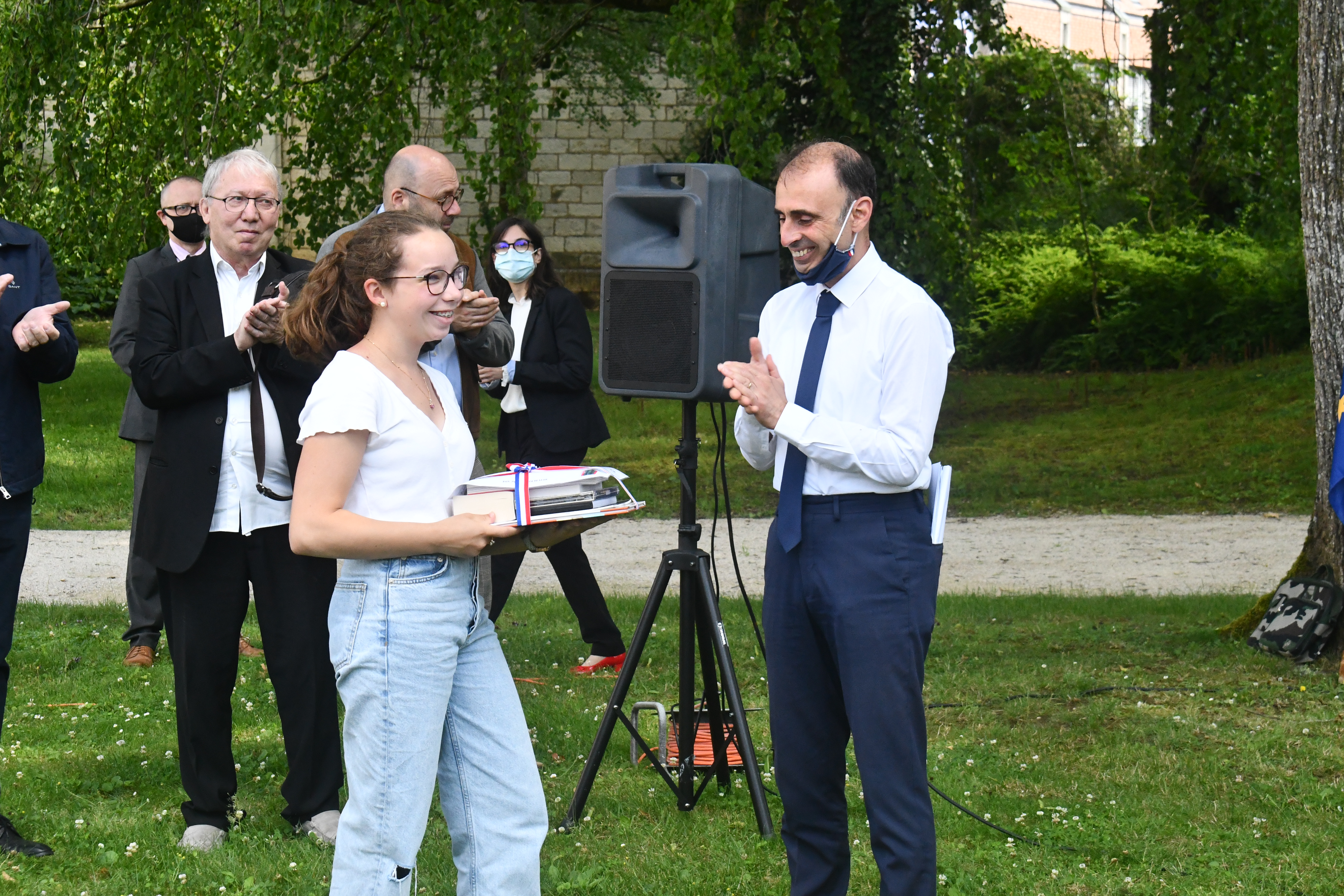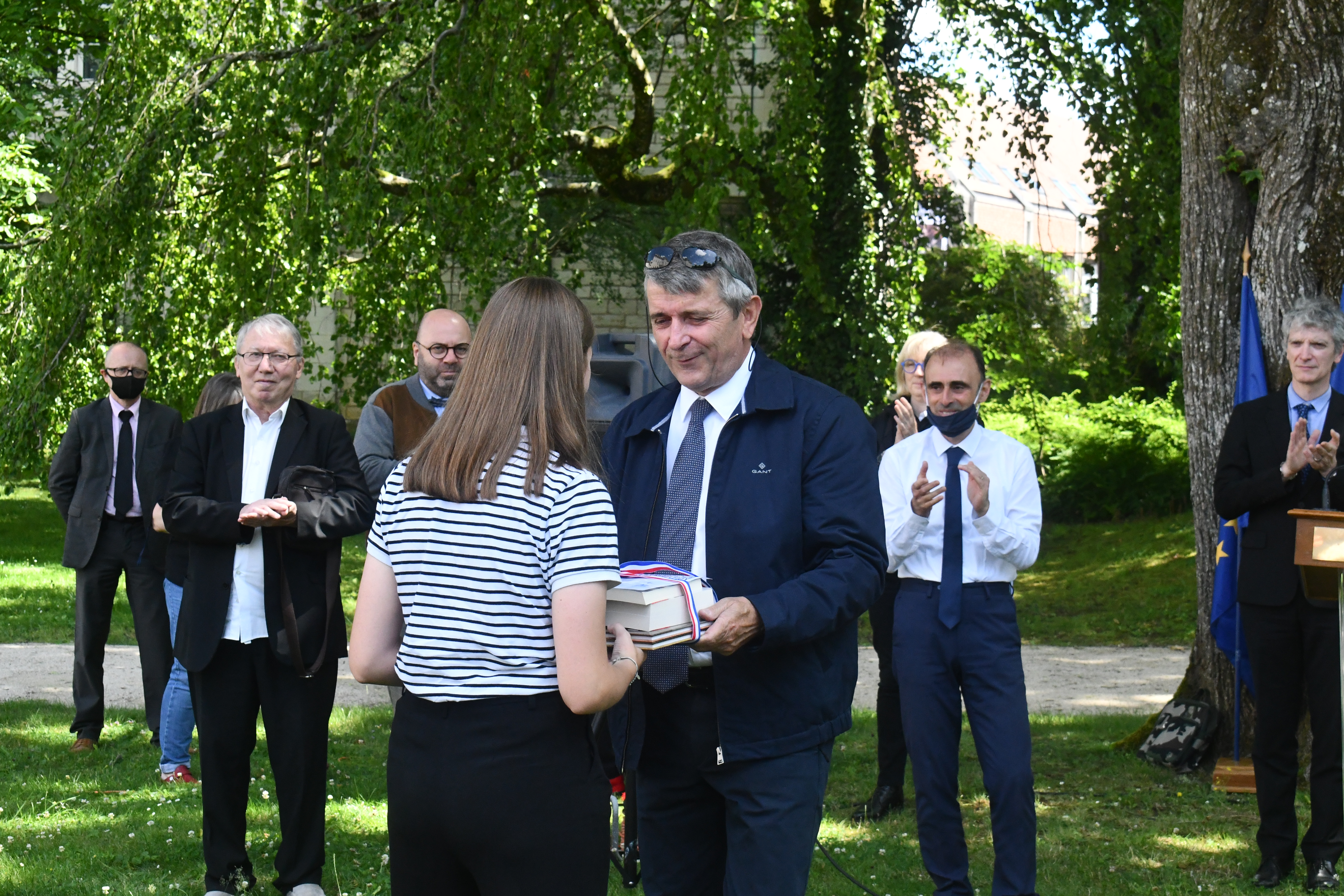Les lauréats du concours départemental de la Résistance et de la Déportation, provenant de 14 établissements du Doubs, ont été conviés dans les jardins de la préfecture du Doubs par Jean-Philippe Setbon, secrétaire général et préfet par intérim. On y retrouve 3 lycées, 8 collèges, et 3 établissements professionnels. Parmi eux, quelques élus départementaux, autorités civiles et militaires. Mais aussi Jacqueline Teyssier, 98 ans, rescapée du camp de concentration d’Auschwitz-Birkenau. Elle est une des derniers témoins des horreurs de ce passé effroyable, que les nazis et leurs collaborateurs ont infligées aux Juifs et aux résistants lors de la seconde guerre mondiale. Au total, ce sont 65 prix qui sont décernés, dont 3 qui sont envoyés à Paris, dans le cadre du concours national. 45 prix sont attribués aux collèges, 13 aux lycées, ainsi que 7 prix spéciaux consacrés à certains établissements. Dans ces prix, des livres et DVD achetés grâce à des subventions régulières du département et de la région, mais aussi des dons provenant de l’ONAC (l’Office Nationale des Anciens Combattants) ainsi que d’associations patriotiques.