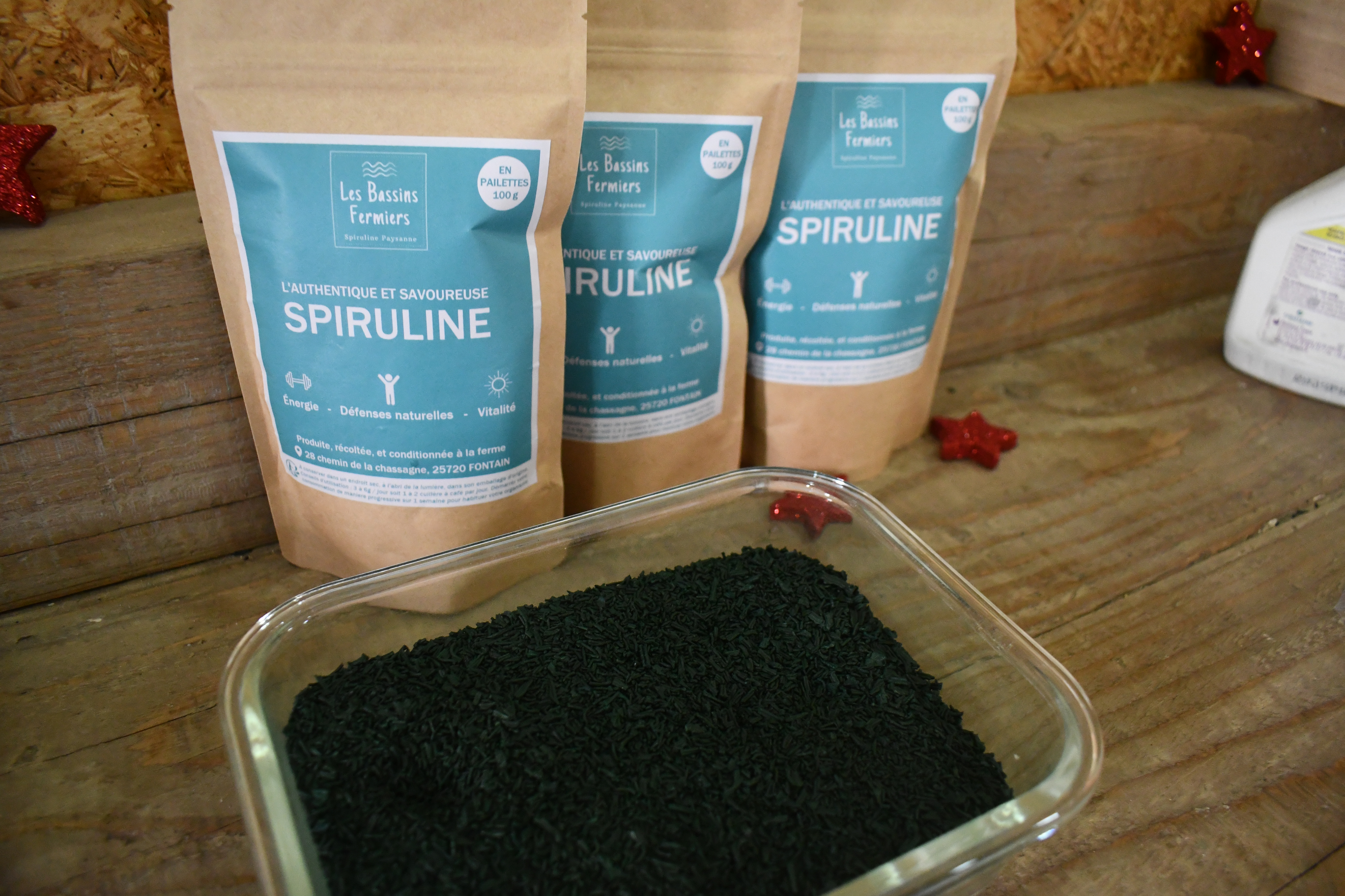 Au départ, il n’était qu’un simple consommateur. Mais très vite, Vivien Desgranges a été séduit par cet aliment et ses vertus. Il a alors élaboré un projet durant trois années, en se renseignant, en allant à la rencontre des spiruliniers de France et en effectuant de nombreux stages. Vivien rêvait de fonder son projet « de production, autonome, en adéquation avec ses valeurs et son éthique Â». C’est depuis le 1er juillet qu’il a ouvert sa propre ferme d’aquaculture « Les Bassins Fermiers Â» à Fontain, près de Besançon. Cette phase de lancement s’est fait sur les chapeaux de roues pour le jeune producteur. Des portes ouvertes avec plus de 500 personnes pendant deux jours, d’innombrables sachets vendus, et une production qui ne cesse de faire des envieux. Les stocks sont d’ailleurs quasiment épuisés alors que la récolte ne reprendra que l’année prochaine, en mars-avril, dès que les températures seront plus élevées. Pour se procurer la spiruline rien de plus simple, il est possible de se rendre directement à la ferme ou bien dans les différents points de vente locaux. Il est aussi possible de se faire livrer dans toute la France.