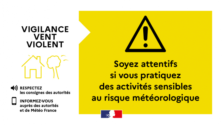 La préfecture du Jura indique que Météo France a placé le Jura en vigilance jaune « vent violent » pour un début d'évènement prévu jusqu'à ce lundi soir. Les rafales de vent pourront atteindre 70 à 100 km/h et même temporairement 110 à 130 km/h sur la deuxième partie de nuit.