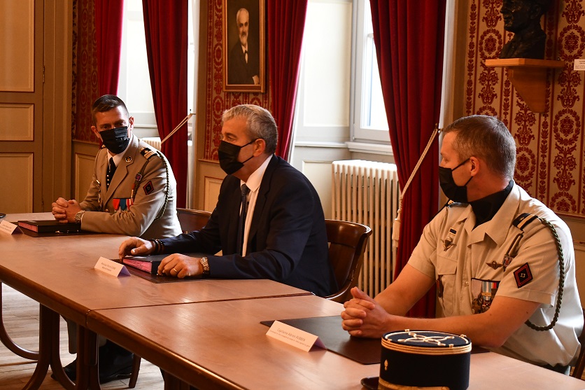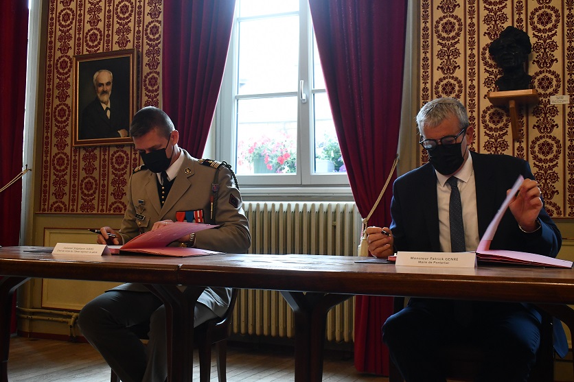 Tout d’abord, Patrick Genre, le Maire de la capitale du Haut-Doubs, a signé aux côtés du Colonel Stéphane Juras, Chef de corps du 13è régiment du génie de Valdahon, et le Capitaine Adrien Rubben, Commandant la 1ère compagnie de combat du 13è régiment du génie, une nouvelle convention de partenariat entre la 1ère compagnie de combat du 13ème Régiment du Génie et la Ville de Pontarlier. Par cet écrit, la Ville de Pontarlier veut « soutenir l’engagement de ces femmes et ces hommes au service de la France ». Un moyen pour l’édile du Haut-Doubs « de tisser un lien fort entre la nation et l’armée française ». Patrick Genre souhaiterait enrichir ce lien en développant des actions auprès des jeunes et des écoles de Pontarlier pour éveiller « à ce que représente l’armée et l’engagement de l’armée française et de ses militaires ».