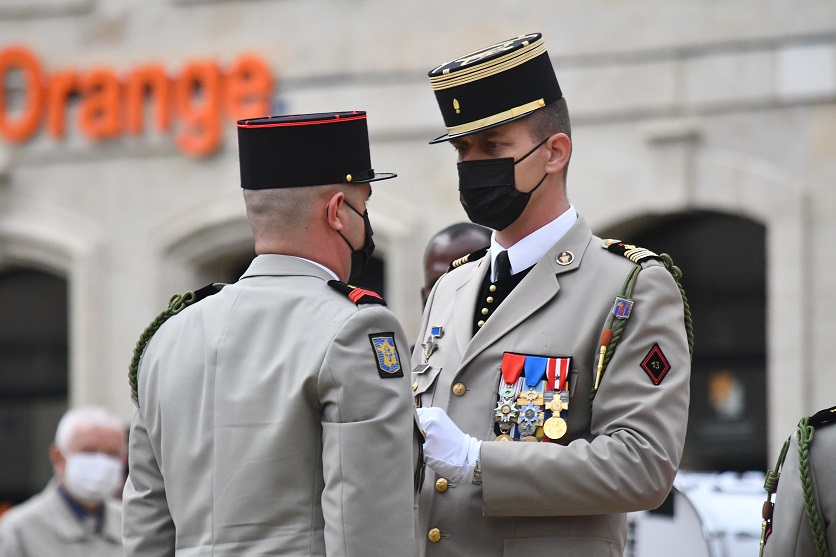 Quelques minutes plus tard, sur la place d’Arçon, le Colonel Stéphane Juras a commandé la Prise d’Armes et décoré deux militaires qui se sont particulièrement illustrés dans l’exercice de leur mission.