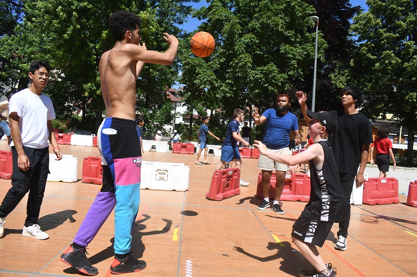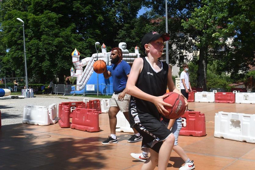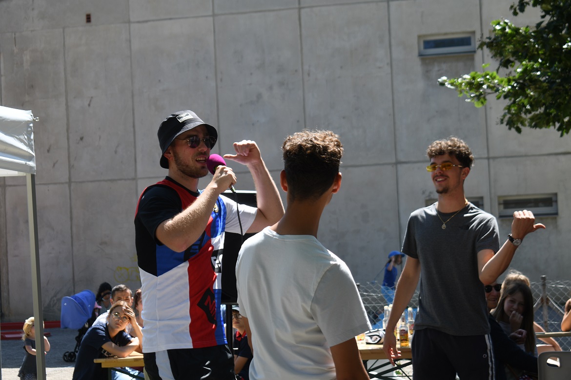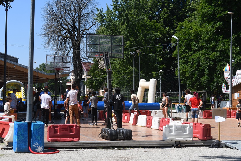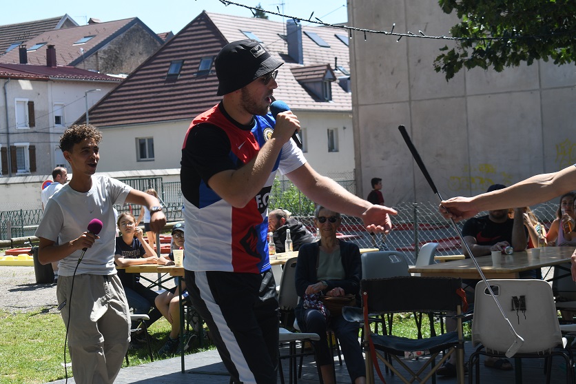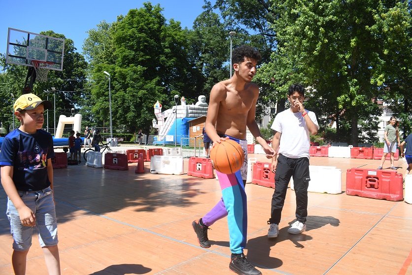 Parties de beach-volley, de soccer, de football, de basket … . Les possibilités sont nombreuses pour improviser une confrontation. Les équipes se forment et petits et grands en décousent. Ce dimanche après-midi, un concert était même organisé. Le jeune rappeur pontissalien Jomo est venu à son tour mettre l’ambiance.