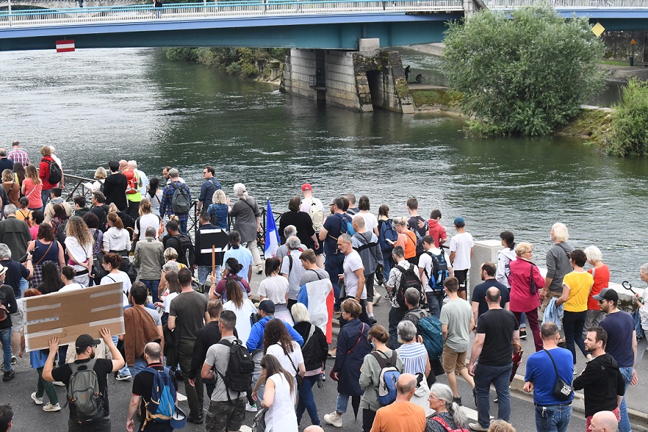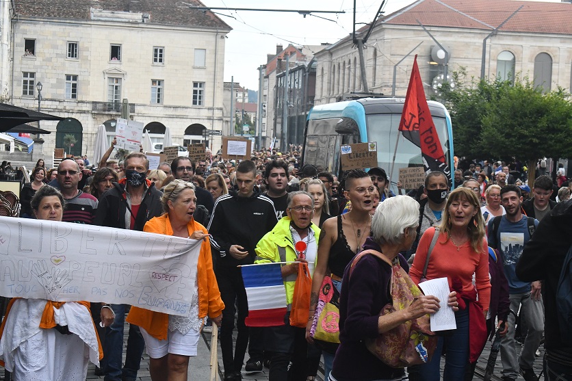 « Non aux lois liberticides », « enfants en danger », « liberté bafouée », « la France en colère » pouvait on lire sur les pancartes et affiches brandies à l’occasion de ce nouveau rassemblement populaire. On est venu en famille pour exprimer son opposition. Dans le cortège, des soignants ont également clairement affiché leur désapprobation, appelant à la désobéissance.