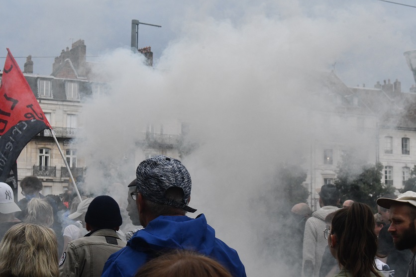 Parti déterminé de la place de la Révolution, le cortège a traversé le centre-ville pour rejoindre la place du huit septembre, où une prise de parole s’est tenue, avant la reprise en cœur de la Marseillaise. Une petite centaine de personnes s’est ensuite rendue devant la Préfecture.