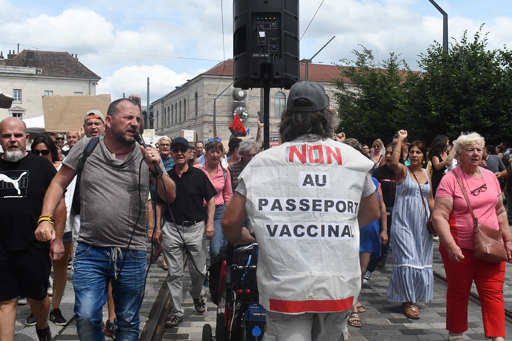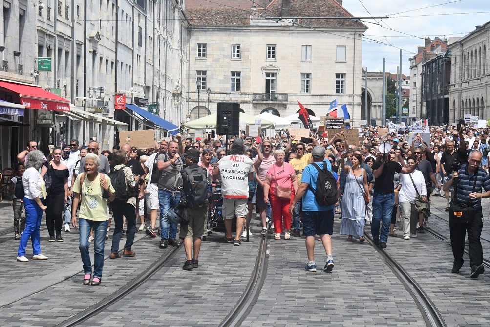 Ce samedi après-midi, les anti-pass se sont mobilisés une nouvelle fois encore à Besançon. Ils étaient entre 1500 et 2000. Ils demandent l’annulation de l’application du pass sanitaire sur le territoire national. Selon eux, ce document « piétine les libertés les plus fondamentales ». Ils pointent également « les contradictions du gouvernement dans la gestion de la crise sanitaire », qu’il s’agisse des mesures sanitaires liées au port du masque, aux tests et aux confinements. Il est ainsi évoqué « une société au contrôle permanent ». Pas question d’accepter la mise en place d’un pass sanitaire « pour être citoyen à part entière ».