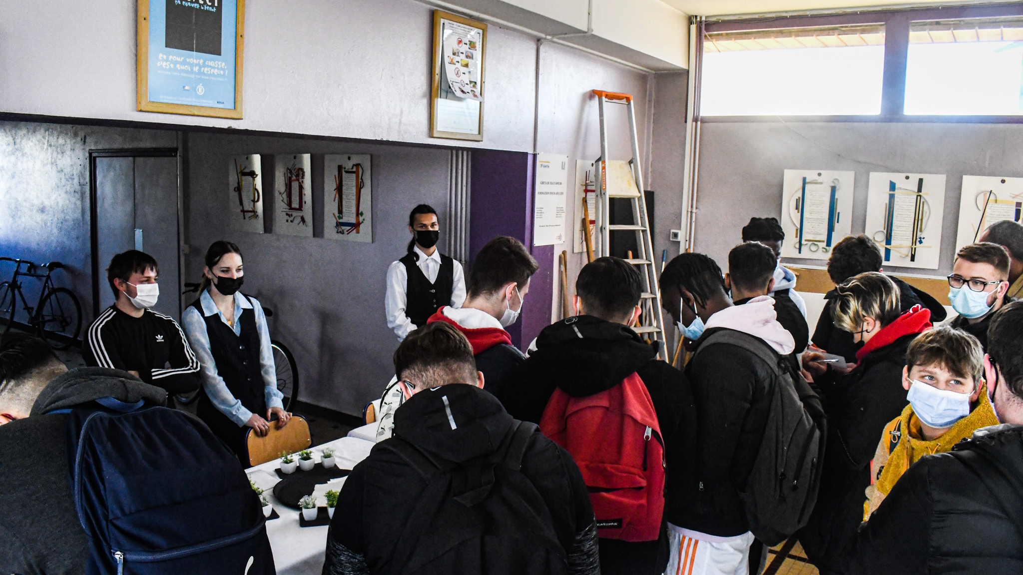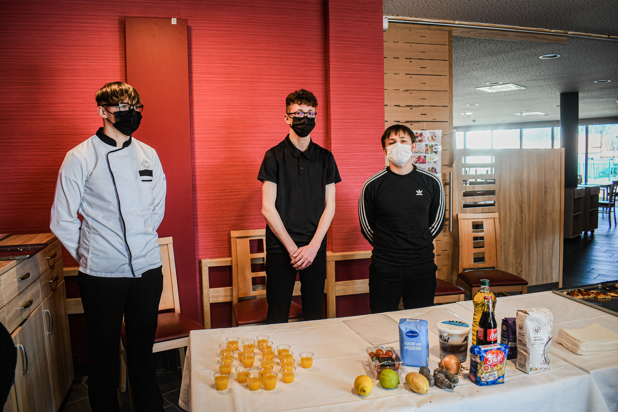 C’est un jeu de piste qui a pris place au lycée Toussaint Louverture à Pontarlier jeudi dernier. Des groupes d’élèves en 1ère bac pro cuisine et restaurant ont réalisé une « Marche Gourmande » au sein de l’établissement. Le principe était de s’orienter sur différents stands tout au long de la marche, ces derniers ayant été travaillés et préparés par les élèves, et se déclinant en 4 thématiques : les différents régimes alimentaires, les bienfaits et intérêts de la pratique sportive, les différentes familles de produits et l’adaptabilité dans la restauration. Dans un premier temps, ils ont effectué des recherches, afin d’organiser leurs informations et pour créer des questionnaires. Ils ont également préparé des mets : barres de céréales, pizza, jus d’orange frais… qu’ils proposaient sur ces stands. Enfin, une dégustation en rapport avec le thème était prévue, et un indice était dévoilé afin de se rendre au stand suivant.