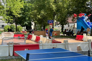 Tennis, aikido, judo, golf, pétanque, ping-pong, tir à l’arc ou encore escalade, la liste des activités proposées depuis le 28 juin au Grand Cours est longue comme le bras. Durant les horaires d’ouverture (10h-20h), de très nombreuses activités sont en libre accès, que ce soit sur les différents terrains de sable, d’herbe ou de parquet, ou dans les structures gonflables et bac à sable pour les plus petits. Comme chaque année, plusieurs associations sportives pontissaliennes proposent aussi des initiations ou des cours afin de présenter leurs sports, comme par exemple du roll-curling, de l’escrime, des cours de fitness ou encore une initiation au pound. La nouveauté de cette édition 2023 était accessible ce week-end, avec une tour d’escalade de 8m de hauteur, encadrée par le Club Alpin Français. Un parcours d'aventure reste également disponible, permettant la découverte de l'accrobranche.