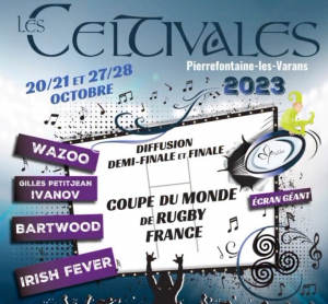 La 26è édition des Celtivales de Pierrefontaine-les-Varans se déroulera les 20 et 21 octobre et 27 et 28 octobre prochains. Cette année, Coupe du Monde de rugby oblige, l’ovalie aura toute sa place. Les amateurs du ballon ovale et tous ceux qui aiment les belles ambiances sportives et conviviales seront ravis. Et si en plus le XV de France va jusqu’au bout de la compétition, on n’ose imaginer la belle effervescence qui en résultera.