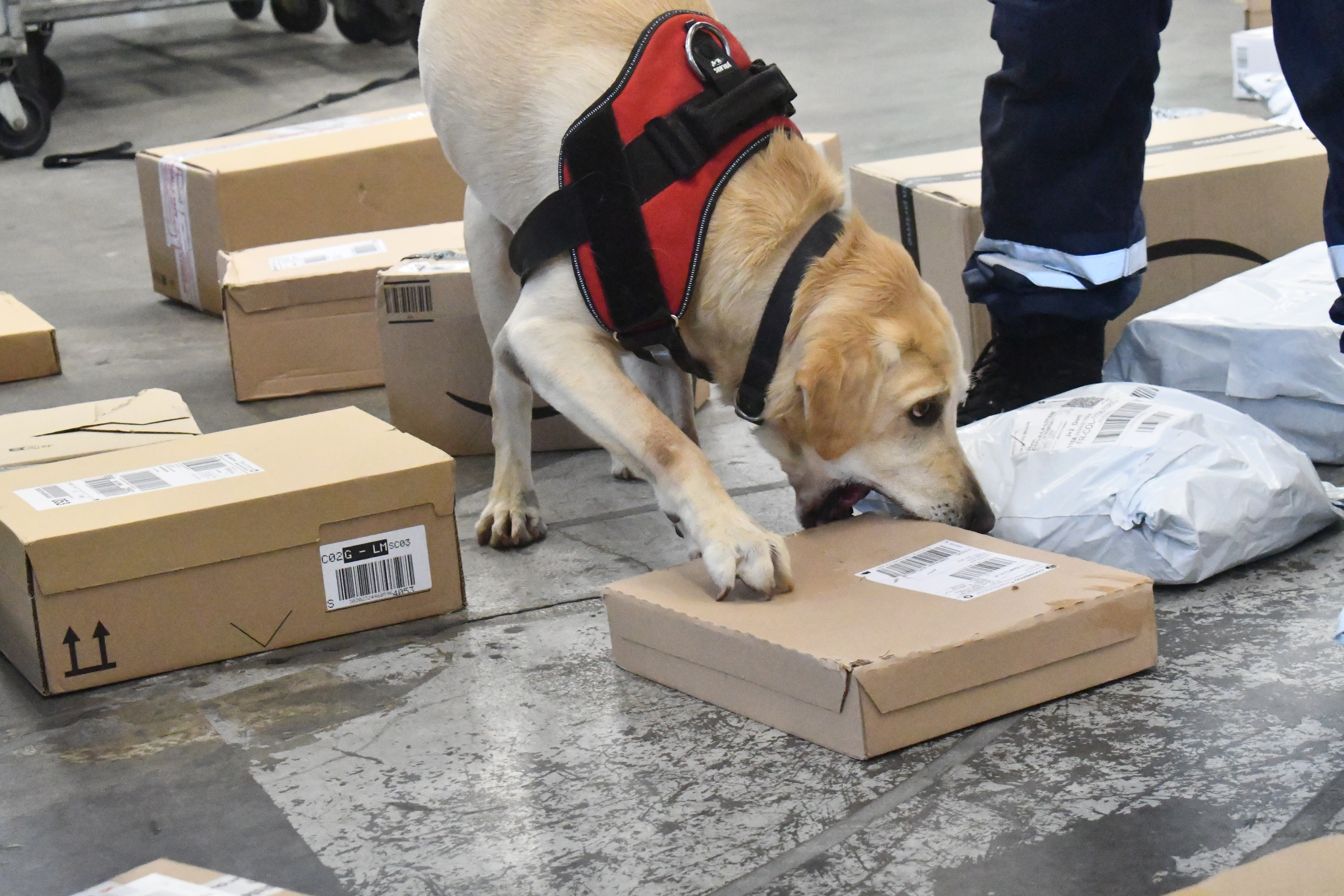 Quelques minutes plus tard, Marki, le labrador de détection des douaniers, s’agite près d’un rack. Les agents éloignent alors le chien, disposent l’intégralité des colis au sol, avant de laisser à nouveau le canidé faire son job. Ni une ni deux, Marki pose la patte sur un premier carton et se met à mordiller une extrémité. La marchandise est saisie, ouverte. Bingo. Guidé par son fabuleux flair, le labrador ne s’est pas trompé, les douaniers mettent la main sur un carton rempli de feux d’artifices. Immédiatement, Marki se remet au travail, et décèle à nouveau un colis suspect. A l’intérieur, des produits qui interrogent les agents. Briquets, feuilles à rouler, pochette avec des feuilles de cannabis… et trois petits sachets contenant de la résine. Pas de panique, il s’agit cette fois de CBD, un dérivé autorisé en France. Les douaniers inspectent tout de même scrupuleusement les factures, la société expéditrice et les produits. Tout semble en règle.