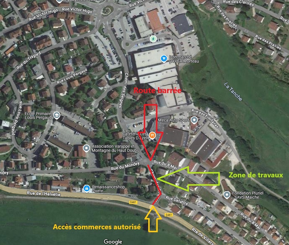 La RD 571 sera totalement fermée à la circulation durant les quatre semaines de travaux. Une déviation est prévue par la voie des Mercureaux (RN 57). Les commerces de Morre et du secteur Rivotte restent accessibles.