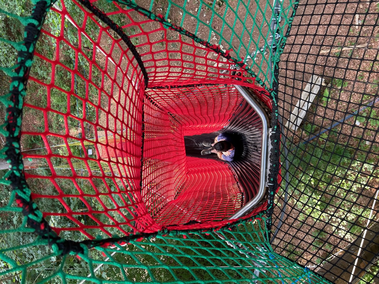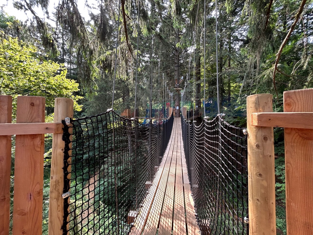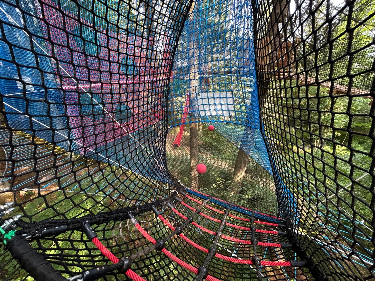 Inauguré l’année dernière, lors des vacances de la Toussaint, la toute nouvelle activité du parc, le bois des Chats Gris est accessible à tout le monde. Ce parcours invite à vivre une aventure en famille, alliant promenades sur des passerelles en bois et jeux en apesanteur sur des trampolines en filets. Il est possible de sauter sur les filets, de jouer avec des ballons de toutes tailles, de glisser dans des tubes-toboggans, parcourir les passerelles en bois ou simplement prendre le temps d’admirer la vue depuis les plateformes d’observation. Cette activité ne nécessite aucun équipement particulier pour évoluer en toute sécurité et en autonomie dans les arbres.