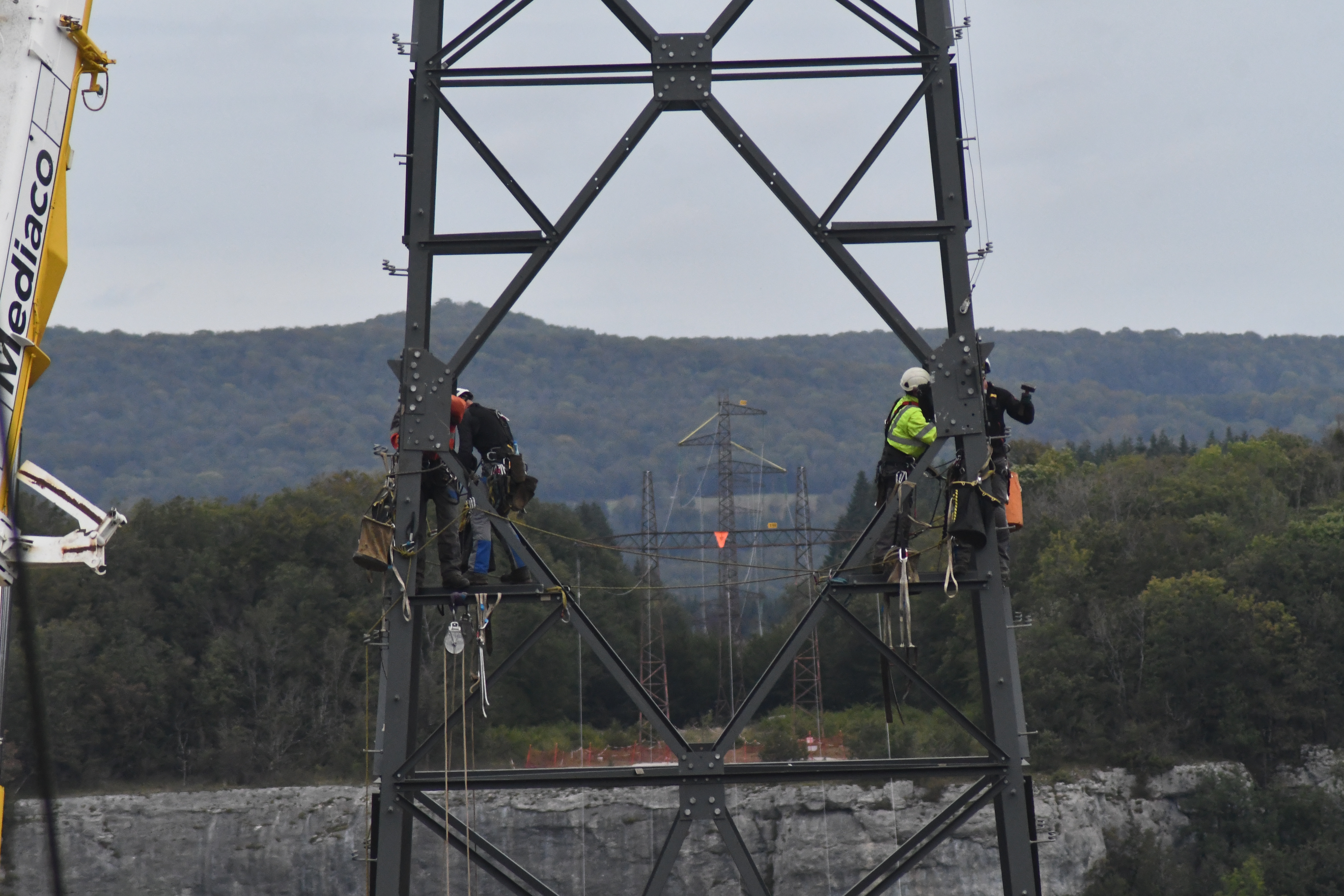 Le tracé de la ligne reste inchangé : il traverse 25 communes du Doubs et du Jura et des zones naturelles sensibles. Les travaux préparatoires ont démarré au mois de mars, notamment avec la réalisation des pistes d’accès. Le renforcement des fondations et la rénovation des 137 pylônes existants sont terminés. Il s’agit désormais d’installer les nouveaux pylônes et de démonter les anciens. L’opération se déroule en 4 étapes : décrochage des câbles, démontage du pylône, levage du nouveau pylône, puis accrochage des câbles. Ces travaux, ainsi que l’installation des nouveaux câbles se déroulent de septembre à novembre.